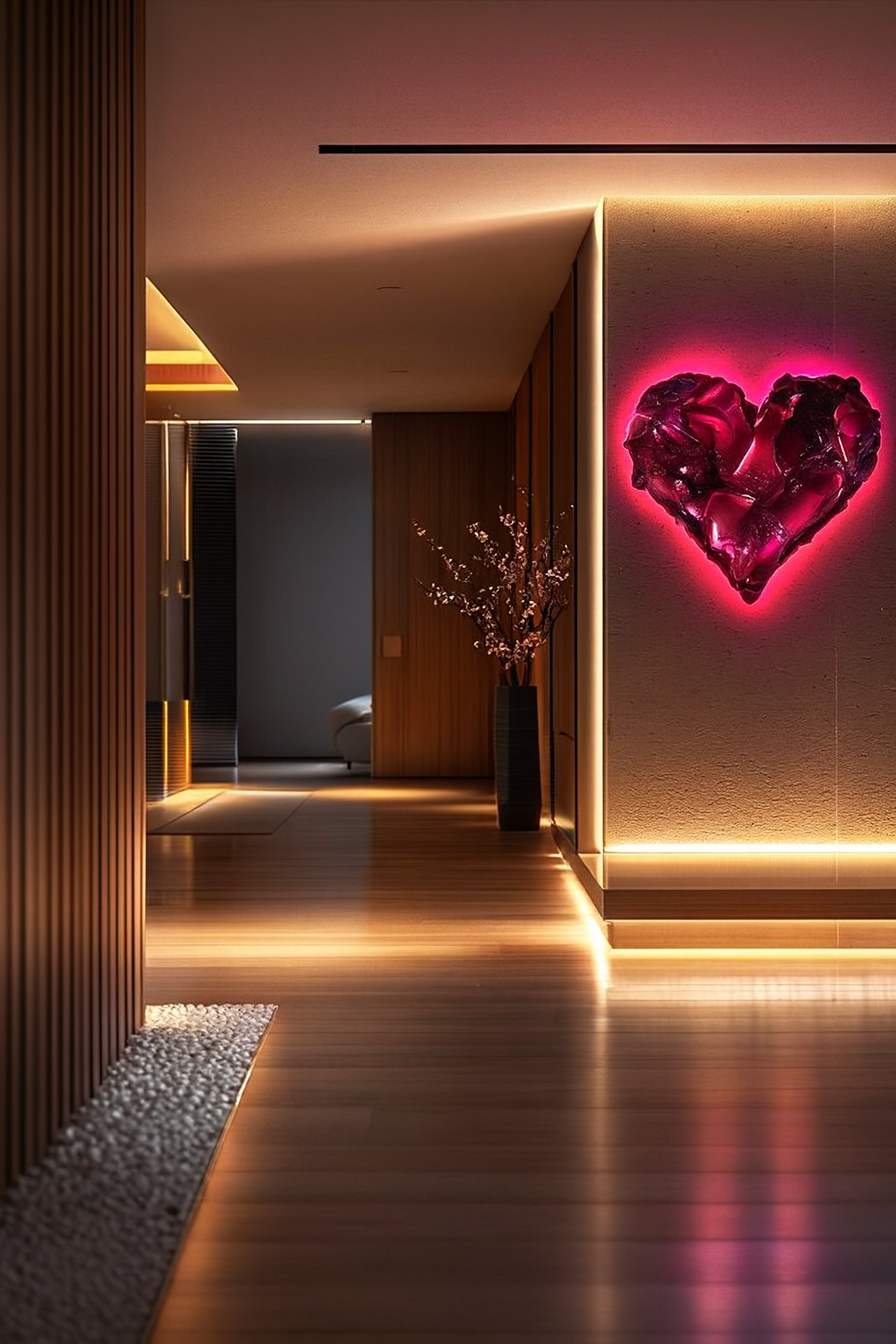 Al momento dell’acquisto è possibile scegliere il colore del cuore — rosso, oro o bianco — che verrà realizzato con led abbinato, per personalizzare l’opera e armonizzarla con lo stile dell’ambiente in cui verrà collocata.