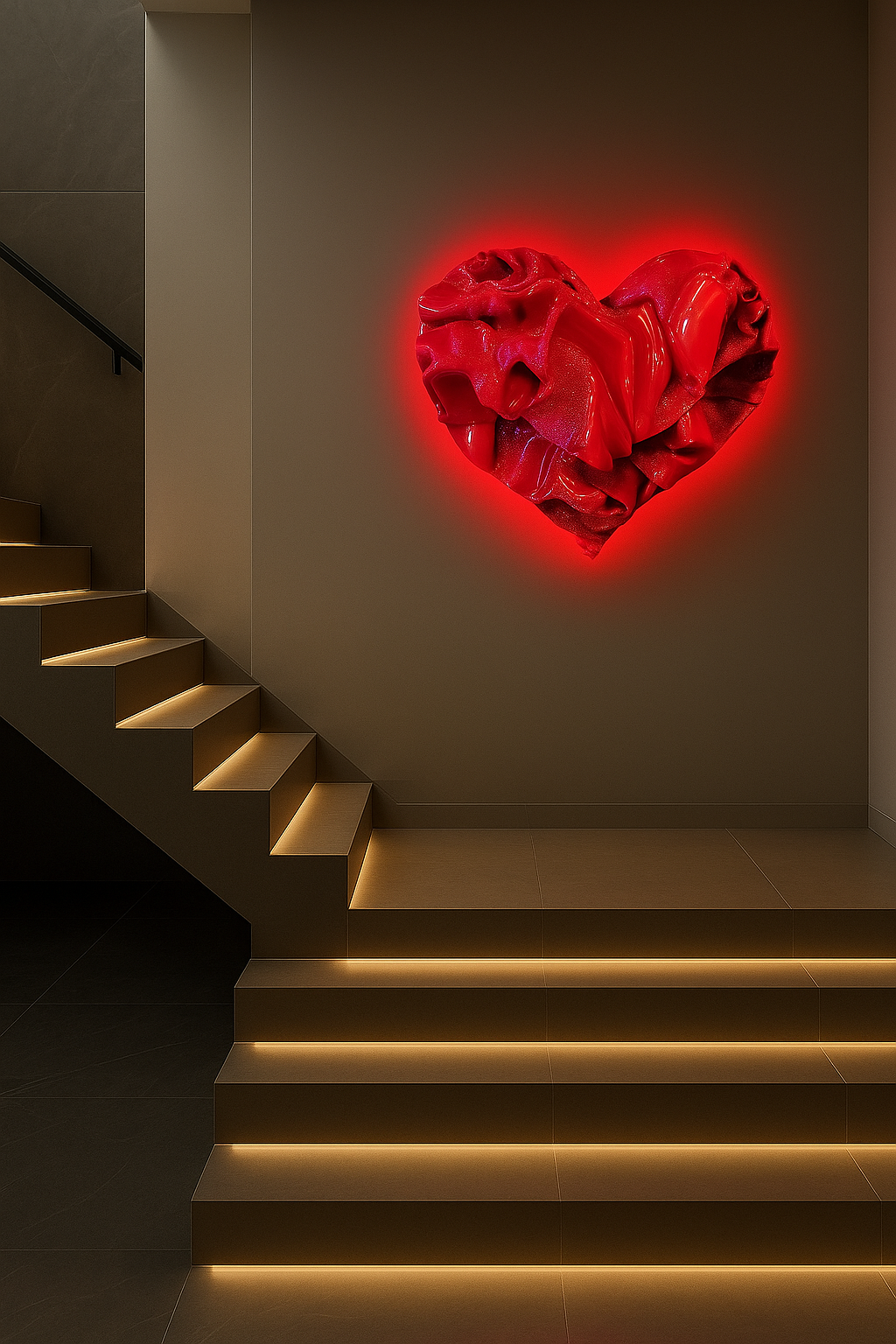 Al momento dell’acquisto è necessario indicare il colore del cuore — rosso, oro o bianco — che verrà realizzato con led abbinato, per personalizzare l’opera e renderla perfettamente armonizzata allo spazio in cui verrà inserita.
